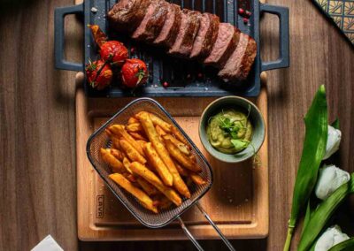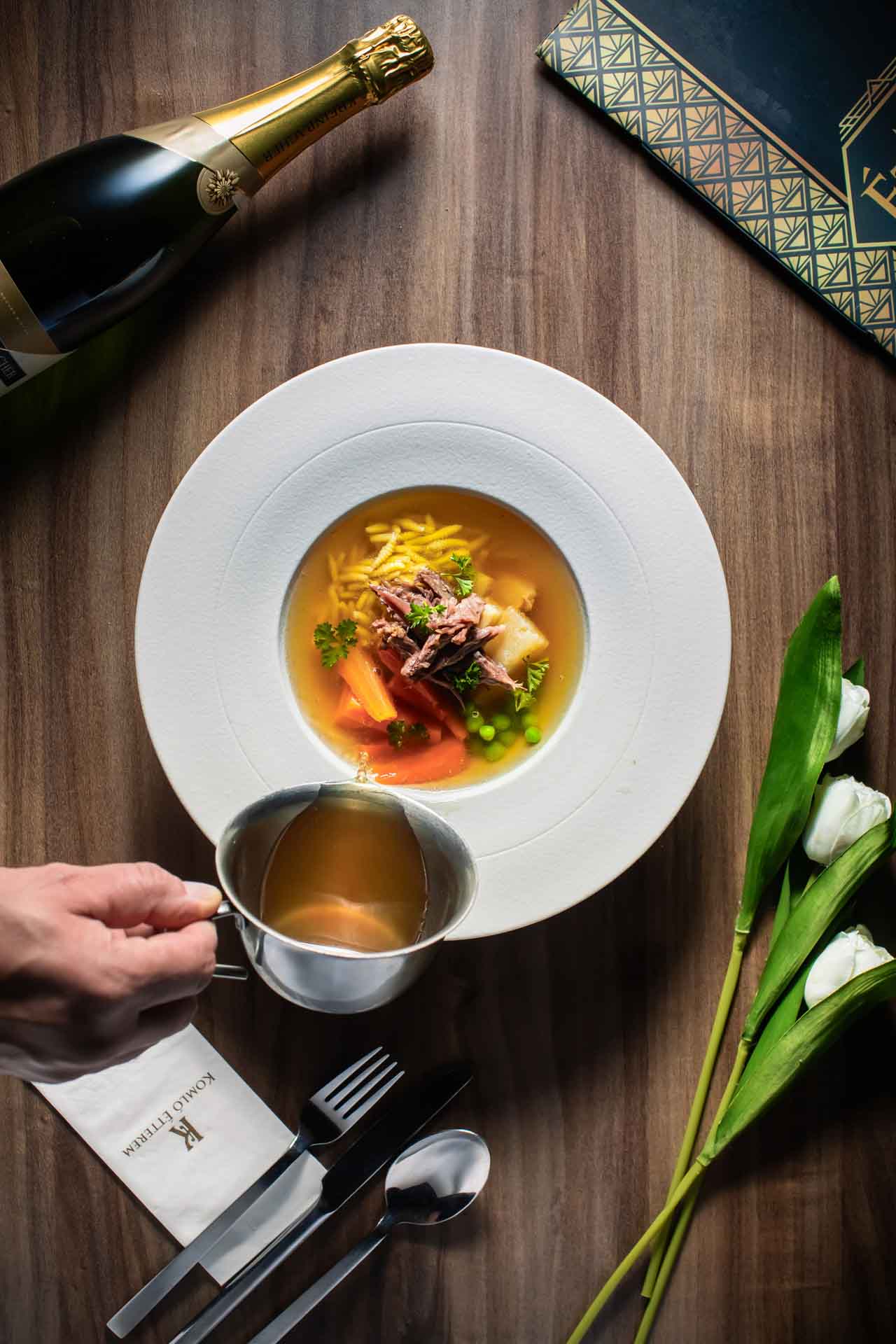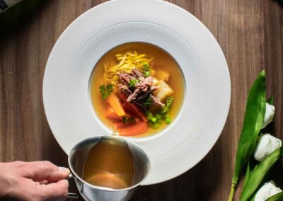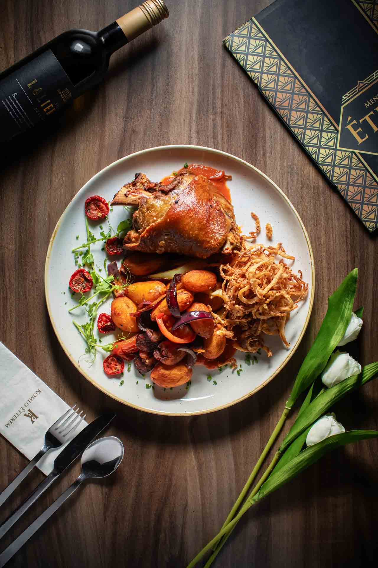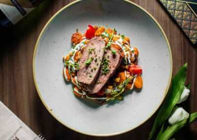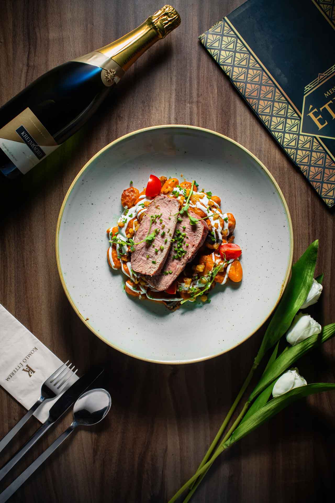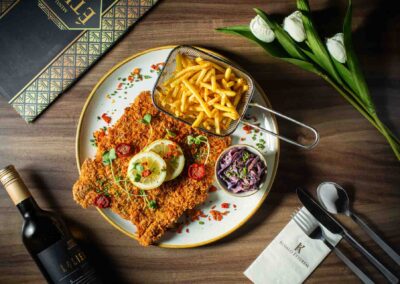 Amennyiben foglalását félpanziós ellátással választja, a Komló Étterem csapata garantálja, hogy a város legjobb éttermében vacsorázzon. A Pásztor Róbert konyhafőnökünk ízlése szerint gondosan összeállított étlap, melyről vendégeink 3 fogást választhatnak (leves, főétel, desszert), minőségi magyar és nemzetközi alapanyagok felhasználásával készült. Hosszabb tartózkodás esetén is biztosított, hogy minden este változatos kínálat fogadja a vendégeinket. Az ételsorok mellé remek kiegészítés éttermünk ital és borlapja, ahol a hagyományhoz hű italkínálat mellett a kor újdonságait is megtalálhatja.